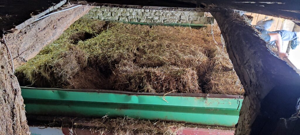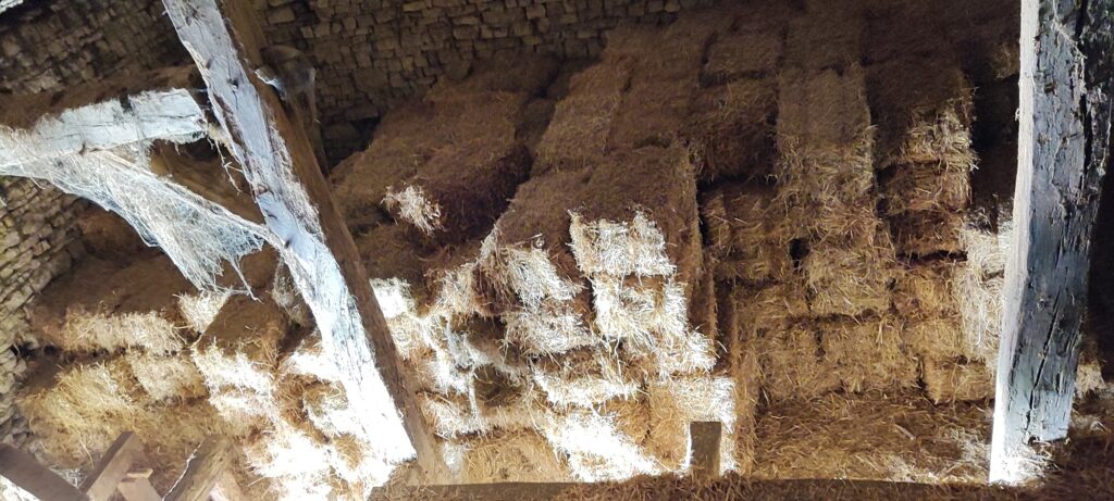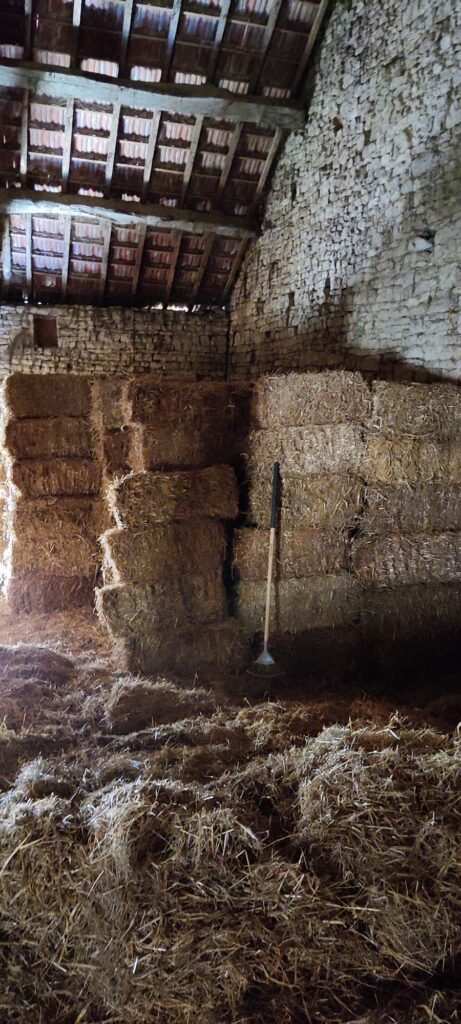 Le week end dernier, avec une partie de la famille, on a tenté de rassembler la paille de la maison pour qu’une écurie du coin vienne la chercher. Au final, on a déplacé peut être un tiers de ce qu’il y a dans la maison.