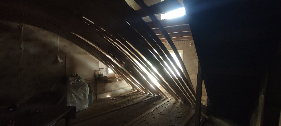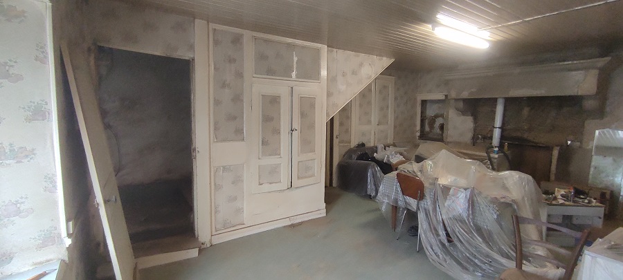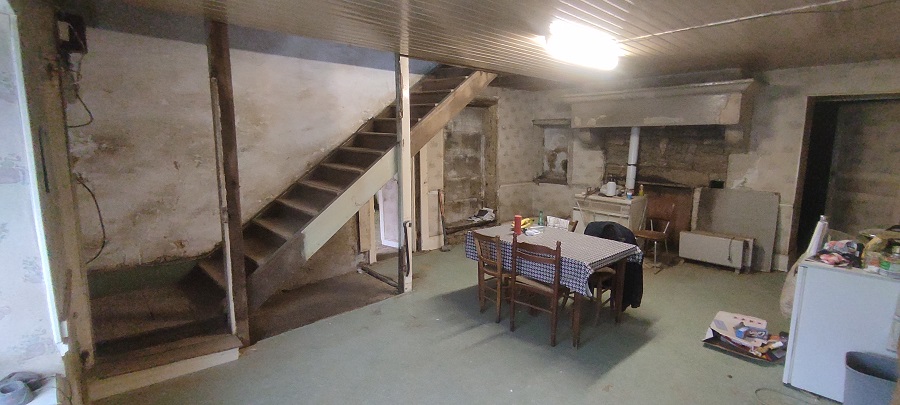 Le coté habitation est quasi prêt, il restera à enlever les planchers de la cuisine et du salon avant l’arrivée de l’entreprise qui va nous faire la dalle.