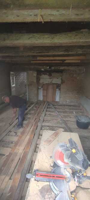 Il a fallu donc tout retirer, puis supprimer les poutres qui étaient pour certaines en fin de vie tellement elles étaient vermoulues.
