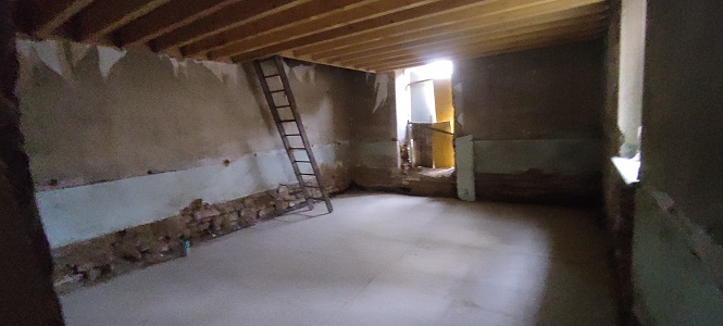 La trémie pour accéder au 1er étage est située maintenant dans le futur salon.