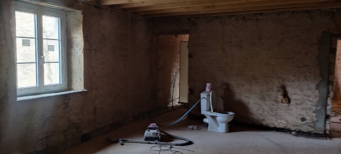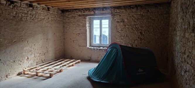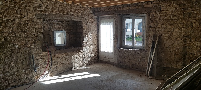 La partie habitation est maintenant prête a réintégrer la cuisinière à bois pour nous chauffer cet hiver .